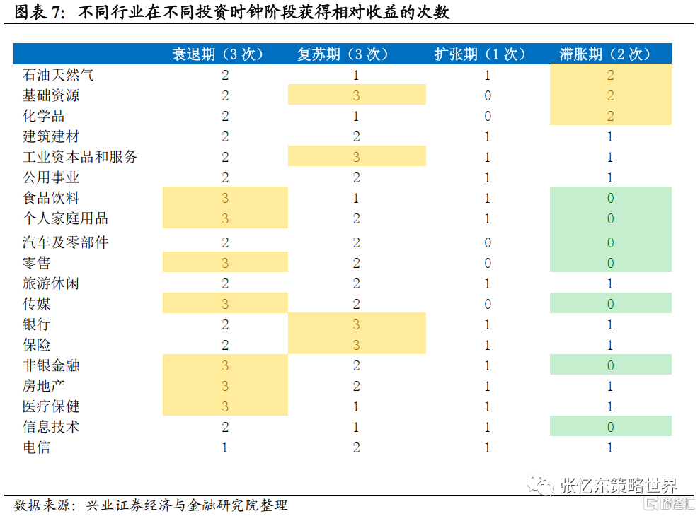 在滞胀阶段,越类似于商品的资源品较好,这些行业包括上游的资源品行业。