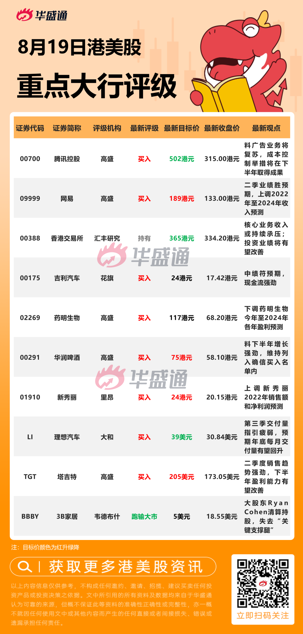 高盛发表报告,指网易第二季业绩好过预期,将网易2022至2024年各年收入预测分别上调1%、0.4%和0.4%。考虑销售及推广开支增加以延长游戏生命周期,报告对其2022年纯利预测维持不变,2023和2024年纯利预测则分别下调3%和4%,将港股目标价微升约1%至189港元,维持评级“买入”。