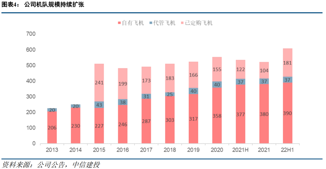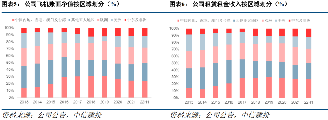 2022年4月,公司签订了公司历史上价值最大的一笔飞机订单,承诺购买80架空客A320NEO系列飞机。这批飞机将于2027年至2029年间交付。此次订单签订后公司的订单数量由2021年底的104架增长至181架,自有机队由380架增长至390架。目前公司机队平均机龄仅为4.1年,全球租赁组合多样性程度不断加强。预计随着航空市场的不断复苏和新飞机的陆续交付,公司未来经营业绩将迎来进一步的提升。