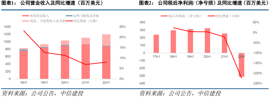 公司于2022年8月18日公布中期业绩,受对留俄的17架飞机进行减值拨备影响,公司2022年上半年录得税后净亏损3.13亿美元,接近盈利预警下限,整体符合市场预期。剔除留俄飞机减记影响后公司核心营业收入为9.73亿美元,核心税后净利润为2.06亿美元,核心业务继续保持盈利。