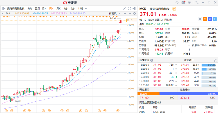 今年以来,伴随美联储激进加息,衰退担忧成为笼罩在美股上方的阴云,美元走强也在侵蚀美国企业利润,大部分明星牛股纷纷回调,但麦克森股价却非常坚挺,今年迄今涨超50%,远远跑赢大盘,并创历史新高。