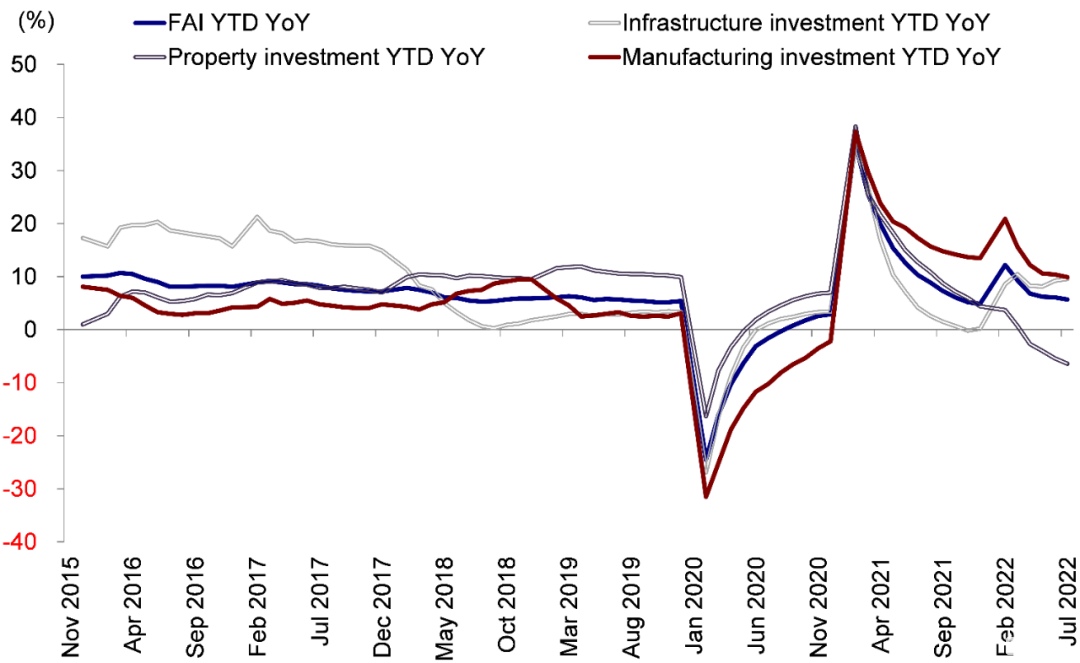 图表:由于房地产投资持续疲弱,固定资产投资低于市场预期