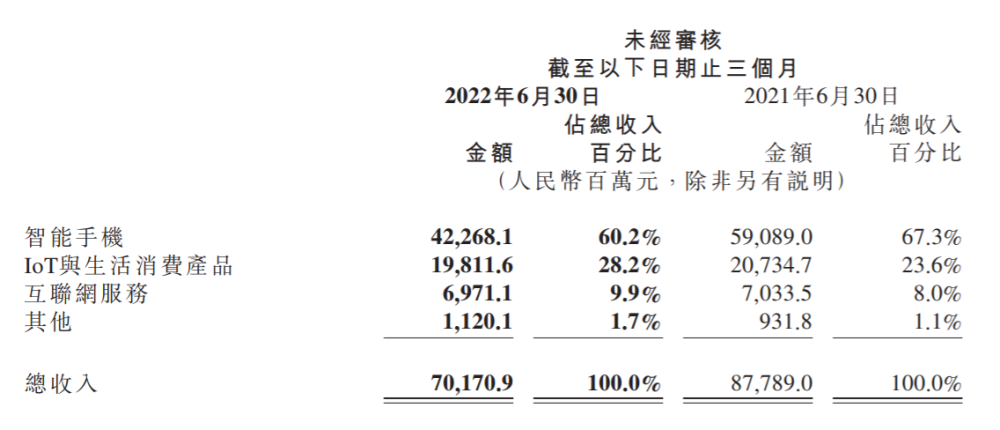 手机业务下滑,是小米集团业务下滑的主要原因之一。