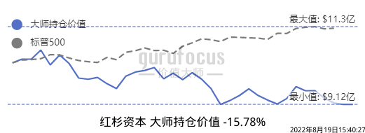 二季度末至今,价值大师估算的红杉资本持仓又下跌了15.78%。