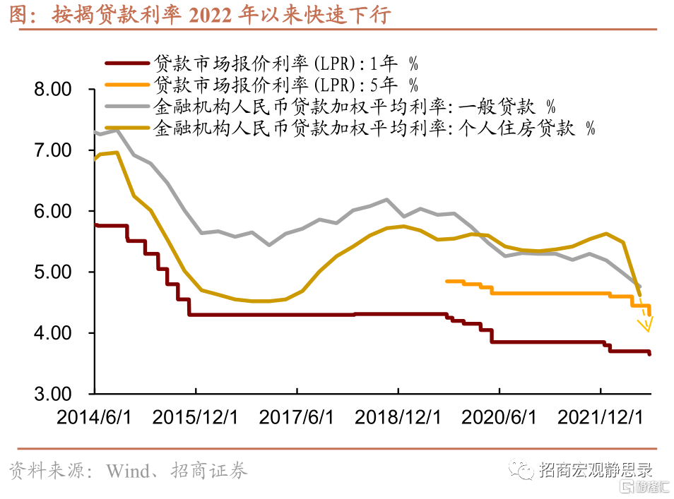 据《金融机构贷款投向统计报告》披露,上半年房地产贷款新增6685亿元(同比减少1.8万亿),增速较上年末下降3.7个百分点。其中,个人住房贷款余额较上年末减少5千亿,按揭贷款市场上家庭部门首次出现净偿还,房地产贷款余额占比降至25.7%,较上年末下降1.4个百分点。据此,我们看到监管部门从二季度开始加速引导个人住房贷款利率下行,单季度87BP的降幅接近历史最快水平。本次5年期LPR下调15BP后,预计三季度个人住房贷款降持续下行,为房地产销售回暖提供支撑,并降低大量存量房贷提前偿还的风险。