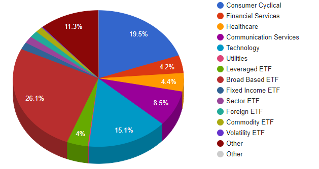 分板块看,行业板块中非必选消费、信息技术和通信服务合约量仍然位列前三,分别占比19.5%、15.1%和8.5%。ETF基金中宽基ETF期权合约占比26.1%,杠杆ETF期权合约占比4%。