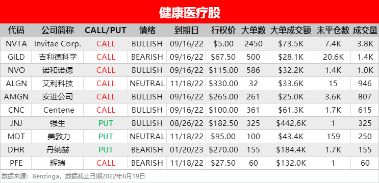 重点动态:Invitae Corp. $NVTA 于9月16日到期、行权价5美元的期权链出现异动CALL大单。该股近期股价连续走低,年内累计跌幅达76%。