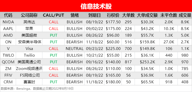 周五(8月19日),非必选消费、信息技术和医疗健康板块相关个股出现较多活跃单,按照当日成交量排行,榜单TOP 10分别如下: