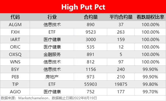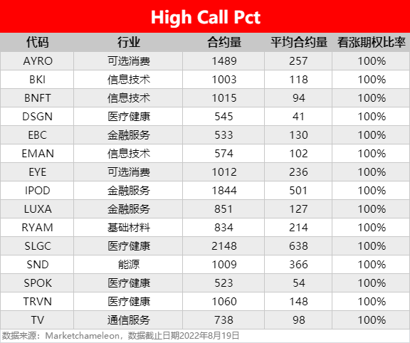 注:High Call Pct/High Put Pct是指相关期权标的当前看涨/看跌比例大小,该比值越高意味着该期权标的看涨/看跌的合约占比越高。