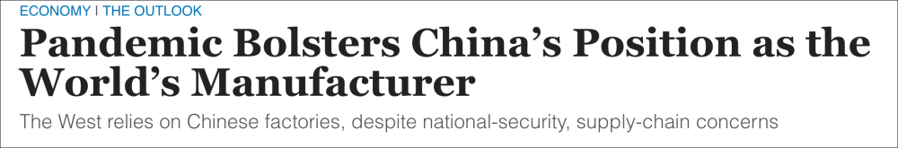 《华尔街日报》:新冠疫情巩固了中国全球制造商的地位