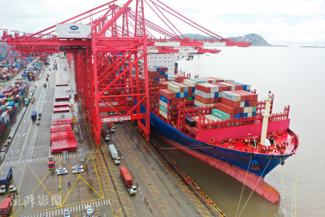 2021年10月15日,上海,中远海运“美线直客特快专线”在上海洋山港盛东码头成功首航,这也是行业内开通的第一批专门针对北美航线直接客户的特快专线服务。