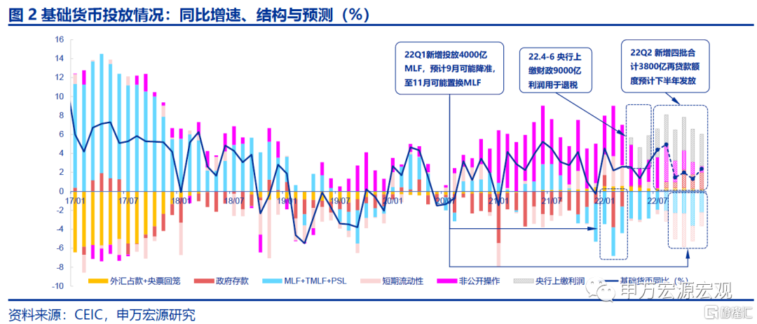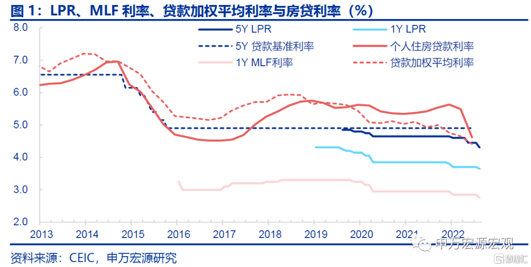 LPR改革以来首次出现1Y LPR-MLF利率利差扩大,主要为避免企业和金融机构短期杠杆套利行为,也显示当前信用扩张的主要目标在于促进中长贷投放拉动有效投资。本次1Y LPR下调仅5BP,调整幅度低于市场预期,也是LPR改革以来第一次出现1Y LPR降幅小于MLF利率降幅的情况,两者利差时隔8个月后重回90BP,此前这一水平稳定长达27个月(2019.9-2021.11)。今年二季度上海疫情期间,一些制造业企业面临较大的生产周转压力,已经超大规模借入短期信贷资金进行过桥,当前央行通过压缩1Y LPR下调幅度,传递出避免企业和金融机构借短放长、过度进行短期杠杆套利行为的政策含义,并且相当明确地显示出当前信用扩张的主要目标在于促进中长贷投放拉动有效投资,而短期信贷已经不是重点。
