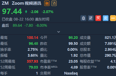 Zoom表示,预计三季度调整后每股收益为82-83美分,营收为10.95亿-11.00亿美元,低于分析师预计的91美分和11.5亿美元。