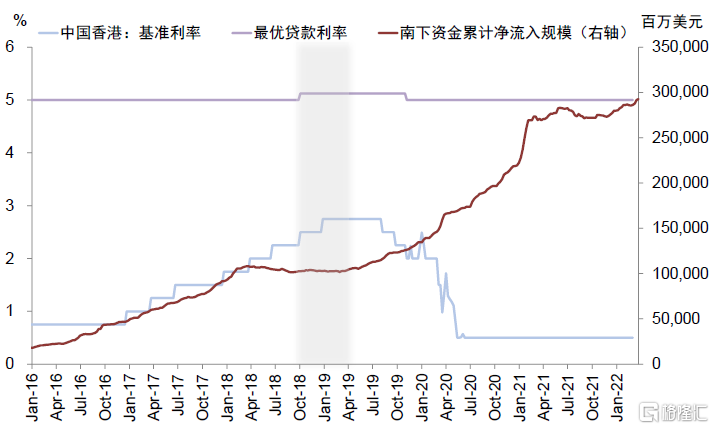 图表25:2018年加息周期中,内地投资者对港股的乐观态度推动南向资金保持温和流入