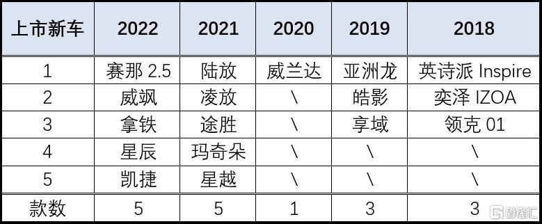 表四:2018-2022HEV上市新车