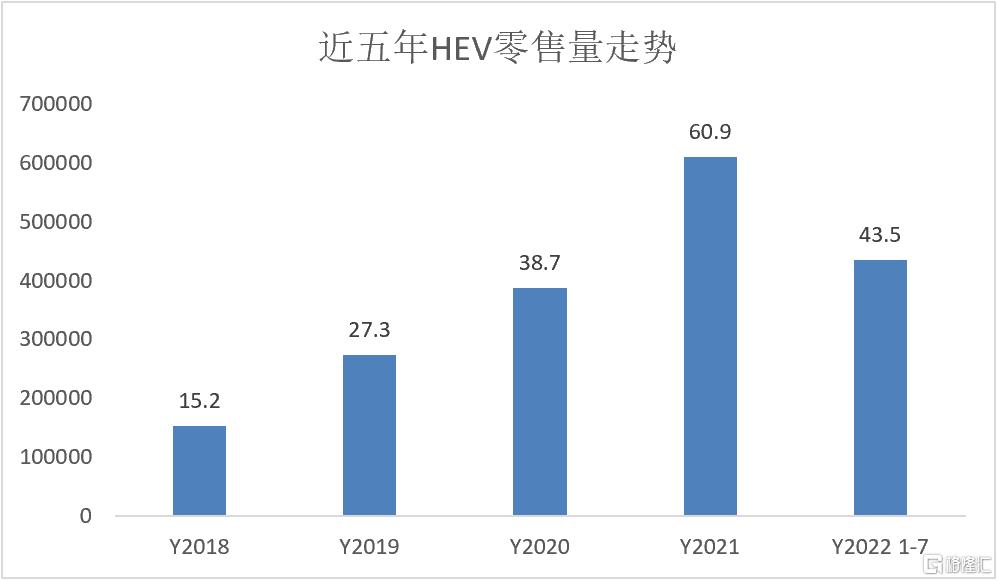 图一:近五年HEV零售销量走势