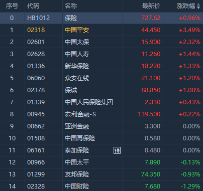 华盛资讯8月24日讯,港股保险板块盘初普涨,截至发稿,中国平安涨超3.49%,中国太保涨2.32%,中国人寿涨1.44%,新华保险涨1.33%。