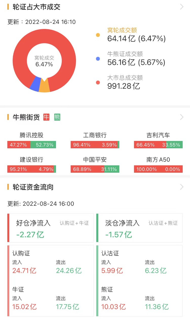 其中,窝轮总成交额为64.14亿港元,牛熊证总成交额为56.16亿港元。