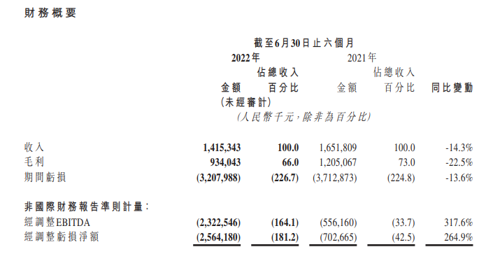 华盛资讯8月25日消息,商汤-W于今日公布截至2022年6月30日止6个月的中期业绩。上半年,集团总收入为14.2亿人民币,同比下滑14.3%;毛利润为9.3亿人民币,同比下滑22.5%,毛利率为66.0%;集团亏损净额为32.1亿人民币,去年同期亏损37.1亿人民币,亏幅收窄。