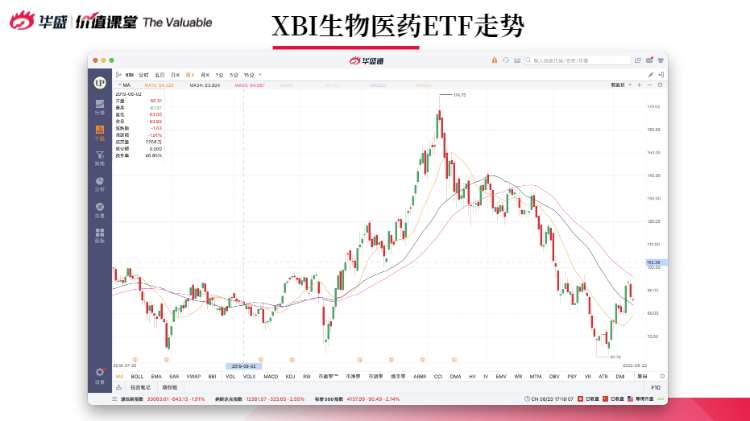 标普生物科技ETF $XBI 走势更加明显,在2021年开始明确下跌,从最高点位170美元跌到最低点位61美元,本轮反弹也未回到100美元。技术分析逻辑里面,生物医药板块整体趋势向下,反弹力度很小,阻力大,并不是一个很好的趋势。阿浦认为,未来一年之内,生物医药不是好的投资方向,离它的中轴线点位130美元还有很大的距离。
