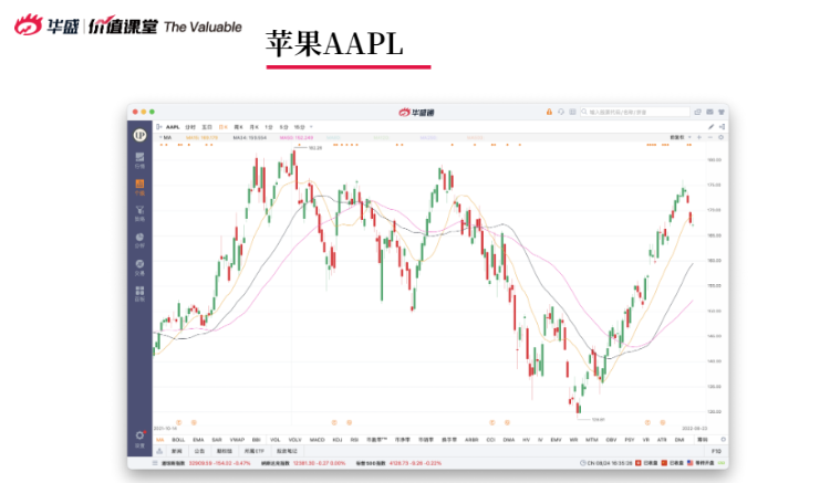 在技术层面上,从7月以来,截止8月19号,苹果整个阶段回调较为明显,本周开始趋势向下,今年整体趋势向下,未来仍然有可能反弹。三条MA线支撑位不一定有效,假设MA50支撑位有效,苹果可能会跌到150美元。