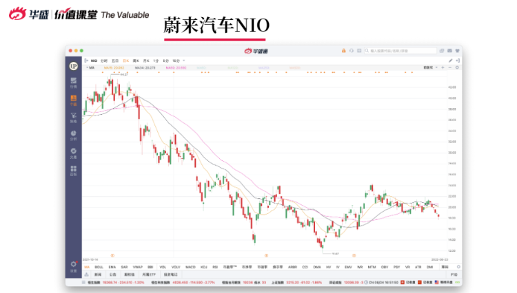 在技术层面上,蔚来目前技术指标整体向下,蜡烛线趋势向下,整个8月走势,基本横盘没有反弹。蔚来的阻力位很明显,就是三条MA线,阻力位压力大,看涨回报率仅有10%,如果下跌的话,跌幅高达30%。从21年开始,蔚来总体整体向下,蜡烛线仍在不断下跌,预计暂时也很难有好转。