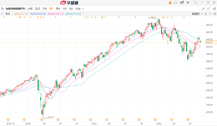 目前标普500指数ETF走势跌破420美元,420美元是标普500指数ETF的阻力位,意味着截止到8月19号,本轮反弹到顶。