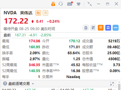 英伟达盘前跌近3%,2023财年Q2业绩不及预期,其中游戏收入同比下滑33%,且Q3指引差于预期。