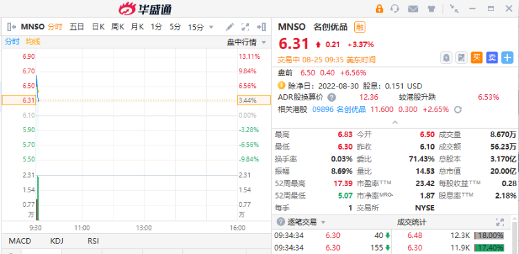 名创优品涨3.27%,名创优品集团公布了2022财年第四财季及年度未经审计财务报告,财报显示,名创优品第四财季营收23.177亿元人民币,较去年同期24.724亿人民币略有下降,但净利润2.085亿元人民币,同比增长87.5%。