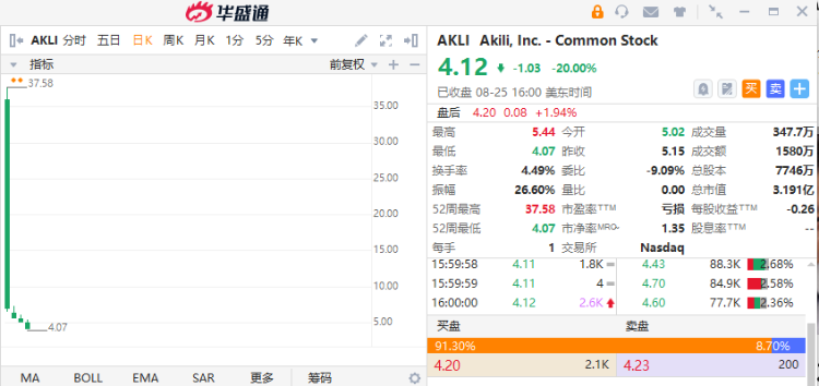 8月19日,特殊目的收购公司Social Capital Suvretta I $DNAA 宣布,其股东已在前一日举行的特别会议上批准其与数字医疗公司Akili Interactive的合并。新成立的公司Akili, Inc.于8月22日在纳斯达克开始交易,新股票代码为“AKLI”。