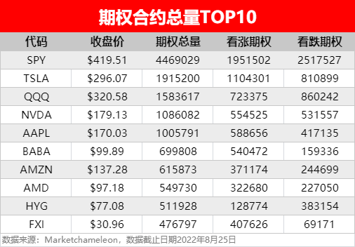 重点动态:周四特斯拉、英伟达等权重股期权合约总量大涨,均超过百万张,其中特斯拉看涨期权合约量占该股期权交易总量近60%,阿里巴巴看涨期权合约量远超看跌期权,沽购比仅0.29。