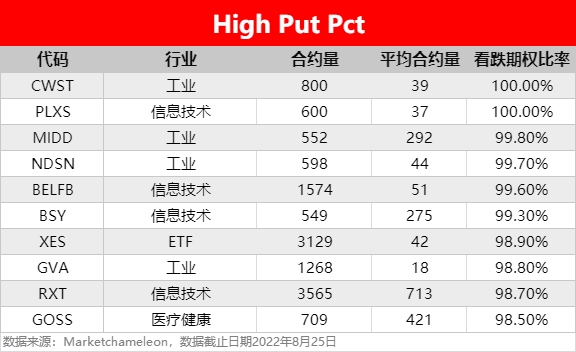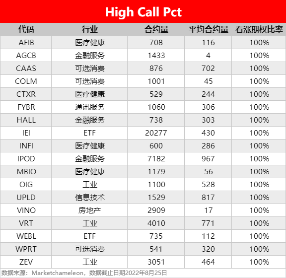 注:High Call Pct/High Put Pct是指相关期权标的当前看涨/看跌比例大小,该比值越高意味着该期权标的看涨/看跌的合约占比越高。