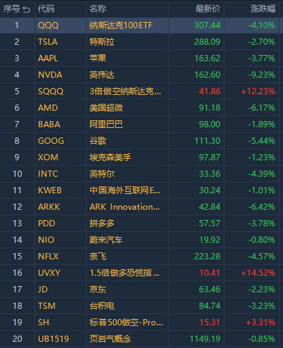以下为美股当日交易最活跃的20只股票(按成交额):