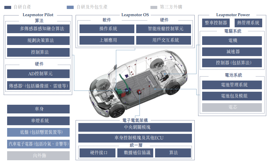 零跑科技是一家2015年创立的中国领先的智能电动汽车公司,根据弗若斯特沙利文的资料,零跑是中国目前唯一一家具有全域自主研发能力的新兴电动汽车公司。同时也是中国垂直整合程度最高的新兴电动汽车公司,实现了智能电动汽车所有核心系统和电子部件的自主研发设计与生产制造,打造了智能动力系统(Leapmotor Power)、自动驾驶系统(Leapmotor Pilot)及智能座舱系统(Leapmotor OS)。