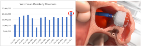 尽管竞争激烈, WATCHMAN在2022上半年依然保持强劲的增长势头:今年第二季度突破2千万美元的历史新高。由于供应短缺手术量依然减少,市场预计下半年堆积的手术量将会为公司带来持续的业绩支持。同时,公司近期推出的消融设备 Versacross Connect未来将于 Watchman一起使用,在提供更好的治疗效果同时也将进一步推动业绩增长。