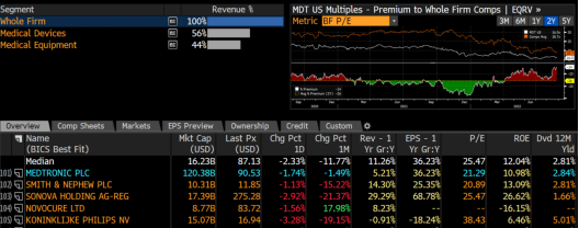由于上述原因,波士顿科学今年二季度上调了指引: 全年有机增长上调至 8%-9%(从之前的 6.5%-8.5%)。由于受到外汇逆风影响,净利润依旧和市场预期持平。但综合来看估值(36% vs. 38 ind.)依旧处于合理区间。