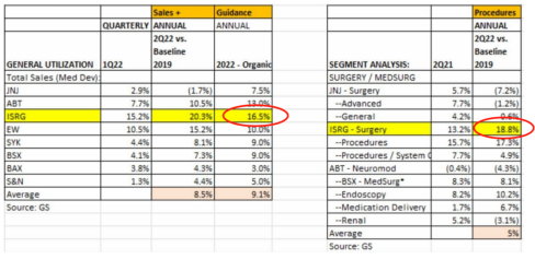 之所以再度提起,原因在于公司在2022年2季度的业绩大幅跑赢行业:在各种逆风的背景下依然保持高达20%的收入增速(行业增速:8%)。尤其是在手术外科领域,收入增速(18.8%)更是跑赢了行业增速(5%)近四倍(详见下图表格)。