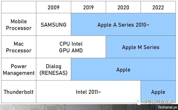 自 2020 年 11 月发布的 MacBook 采用 Apple M1 以来,英特尔处理器就已停止使用,但许多苹果产品继续使用英特尔的 Thunderbolt 芯片(2022 年 3 月发布的“Mac Studio”也是英特尔制造的)。