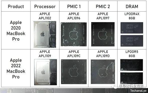 表 2显示了 2020 M1 MacBook Pro 和 2022 M2 MacBook Pro 的处理器和外围芯片的比较结果。