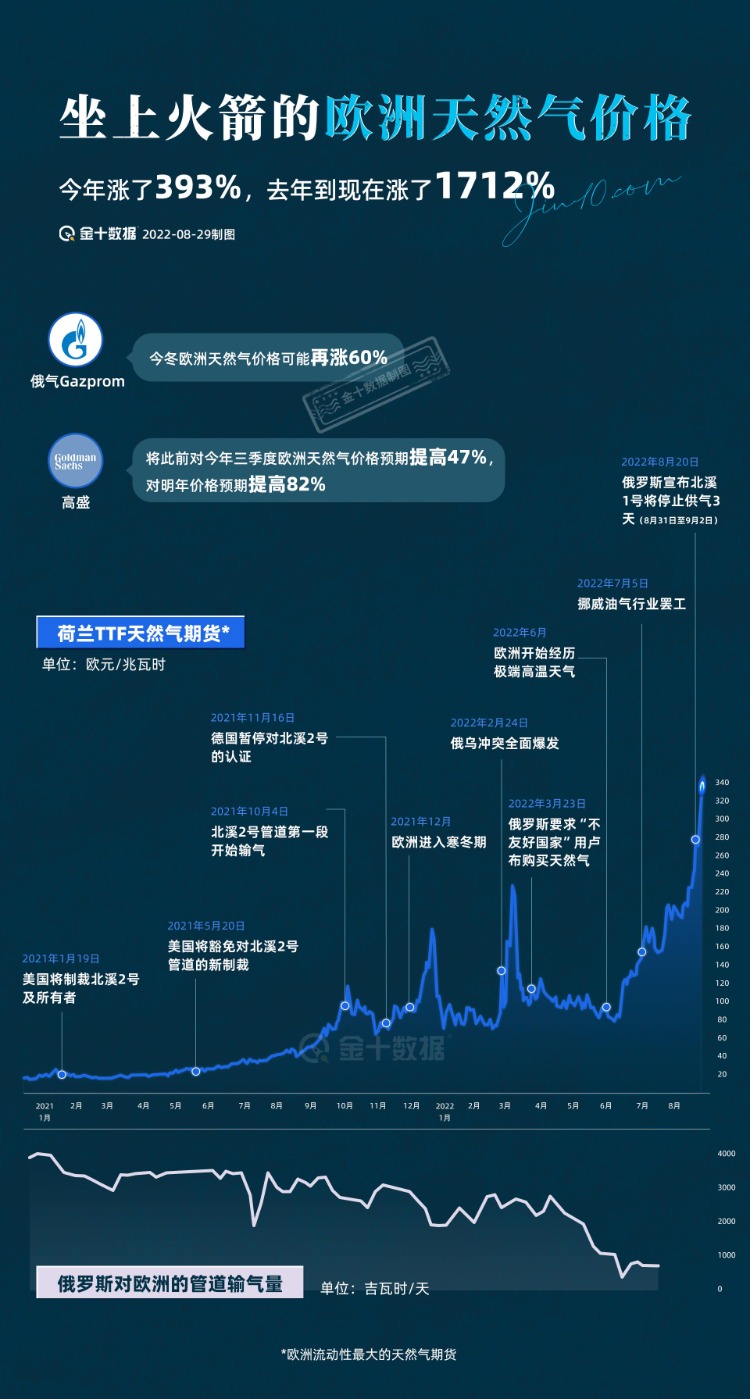 今年至今漲了393%,去年至今漲了1712%,歐洲天然氣價格火箭發射式上漲,還真不全是俄烏危機的鍋。