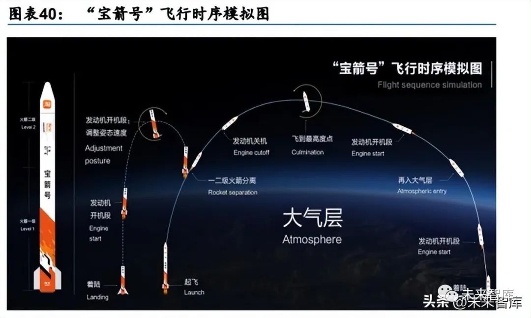 从美国纽约购买特斯拉跑车,40 分钟后在上海收货;从东京筑地市场买蓝鳍金枪鱼,15 分钟上桌……这是对火箭洲际运输发展的构想。2019 年,我国商业航天公司蓝箭航天曾 与淘宝达成战略合作协议,该协议共分为两阶段,第一阶段的目标是研制具备洲际运输能 力的“宝箭号”大型运载火箭,达成“地球 1 小时送达”;第二阶段的目标则是研制小型 化的“小宝箭号”,实现国内秒级送达。“宝箭号”运载火箭全长 48.8 米、直径 3.55 米、 运力为 5-10 吨,加速后能够达到第一宇宙速度,并有望在 2030 年前投入使用。而“小宝 箭号”运载火箭载重量为 100kg,30 公里范围内仅需 60 秒即可运达。