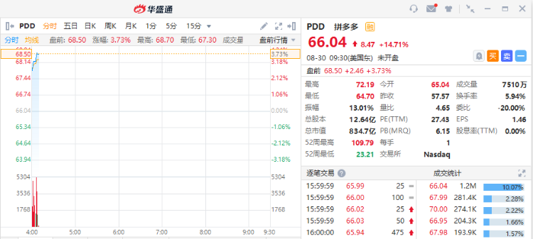 华盛资讯8月30日消息,美股盘前,热门中概股走高,爱奇艺、新东方涨超5%,拼多多涨近4%,高途、好未来涨近3%,百度、京东涨超1%。