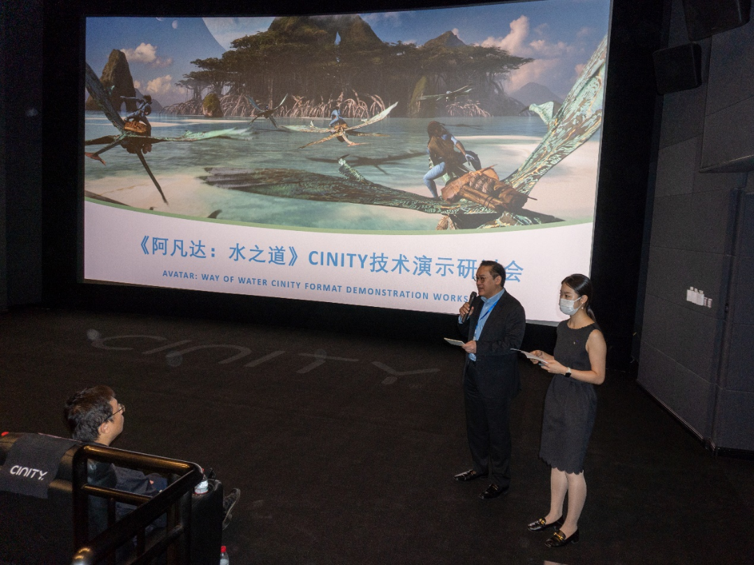 8月19日,《阿凡达:水之道》(暂译名,下同)CINITY技术演示研讨会在中国电影集团公司召开。演示研讨会在中影CINITY实验室播放了迪士尼带来的4K、3D、高帧率CINITY版本的《阿凡达:水之道》演示片段,还播放了《阿凡达:水之道》导演詹姆斯·卡梅隆专为此次演示研讨会录制的致辞视频。