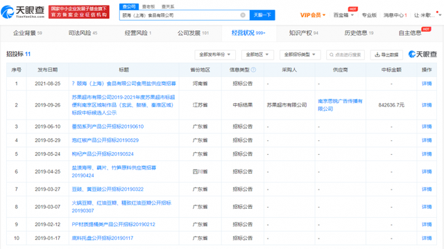 招投标信息显示,该公司曾发布多个海底捞相关招标公告,对番茄系列产品、泡红椒产品、枸杞产品、盐渍海带、藕片、竹笋、火锅豆瓣等进行公开招标,多地的颐海食品公司也多有火锅底料、调味料等招标信息。