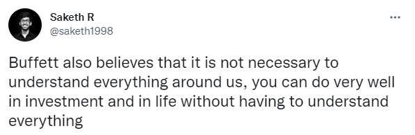 Buffett also believes that it is not necessary to understand everything around us, you can do very well in investment and in life without having to understand everything.