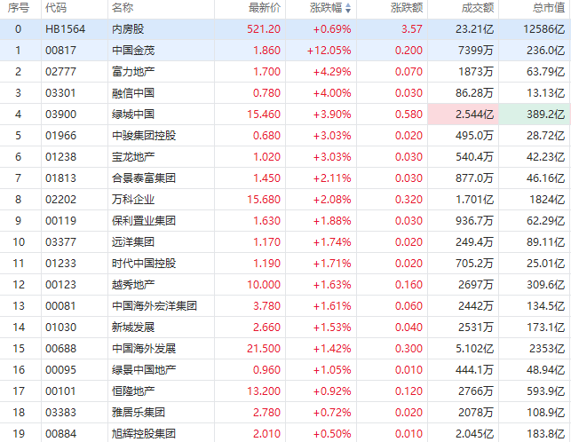 今日(9月1日)早盘,房地产板块大幅拉升,截至发稿,中国金茂涨12.05%,富力地产、融信中国涨超4%,万科企业涨2%,越秀地产、中国海外发展跟涨。