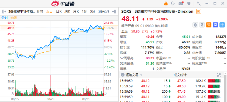3、花旗分析师警告芯片板块可能再跌25%,英伟达又遭“黑天鹅”袭击!3倍做空半导体ETF $SOXS 走高