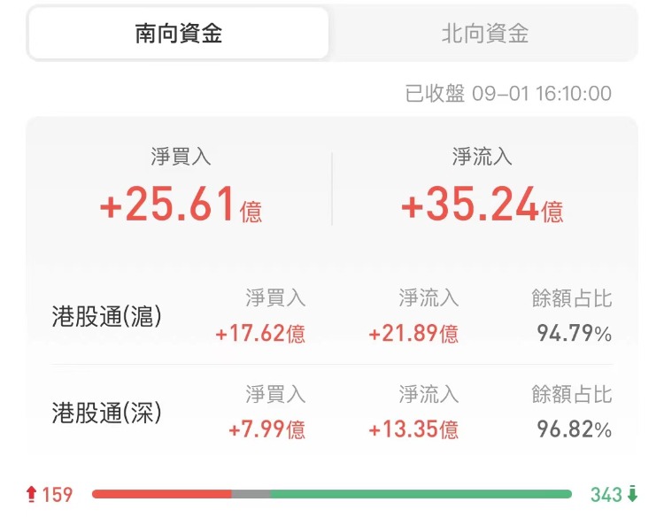 南下资金今日净买入港股25.61亿港元,其中港股通(沪)净买入17.62亿港元,港股通(深)净买入7.99亿港元。上一交易日净买入港股3.92亿港元。
