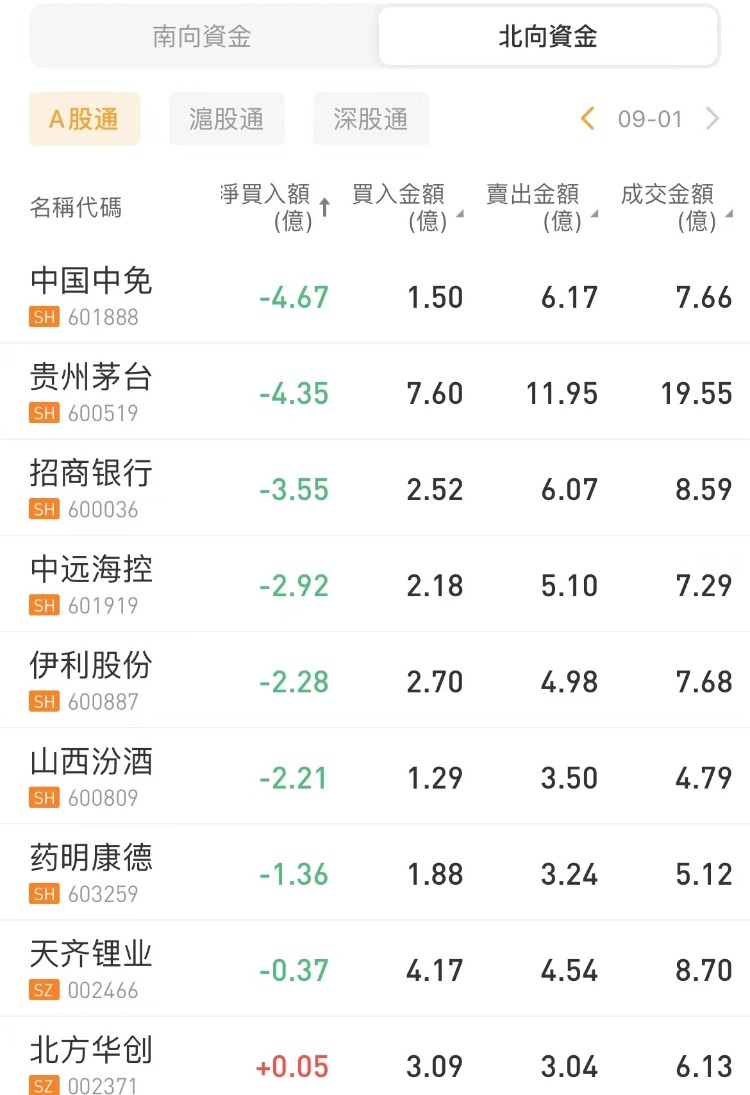 今日北上资金净卖出中国中免4.67亿元,贵州茅台遭净卖出4.35亿元。