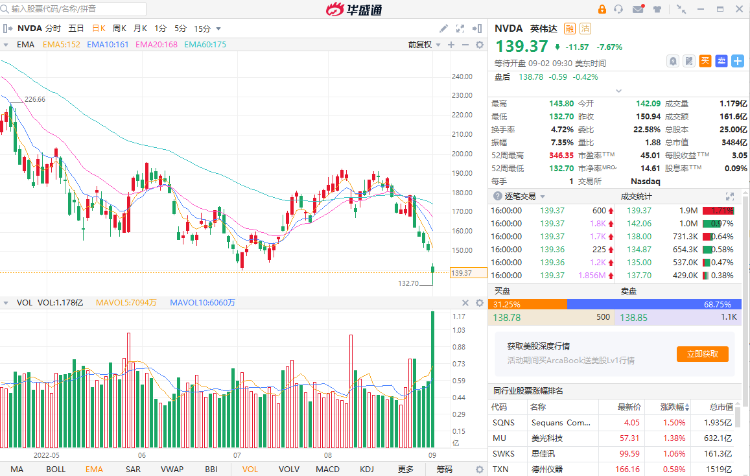 消息面上,8月31日美国芯片设计公司英伟达表示,被美政府要求限制向中国出口两款被用于加速人工智能任务的最新两代旗舰GPU计算芯片A100和H100。